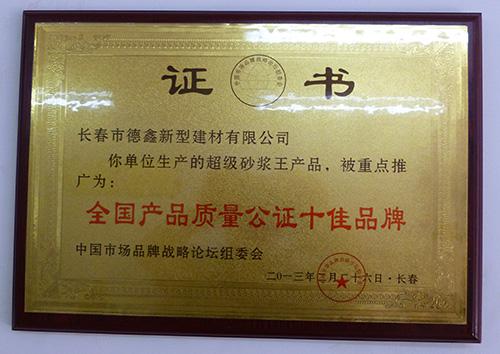 全國產(chǎn)品質(zhì)量公證十佳品牌